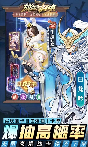放置与召唤高爆版是一款卡牌策略养成类游戏,你能够在这里看到众多精美的人物角色,充满古风国风的游戏画面,紧张刺激的回合制战斗,能够让你沉浸在其中,快来放置与召唤高爆版中尝试。