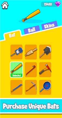 解锁不同类型球棒,球棒不仅外观不同并且还有各自不同的属性