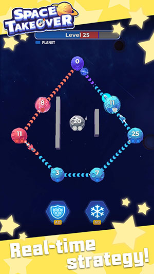 玩法休闲的太空行星争夺策略模拟游戏,连接不同的行星来组成防御屏障,以对抗邪恶boss的入侵,享受科幻风格的策略游戏