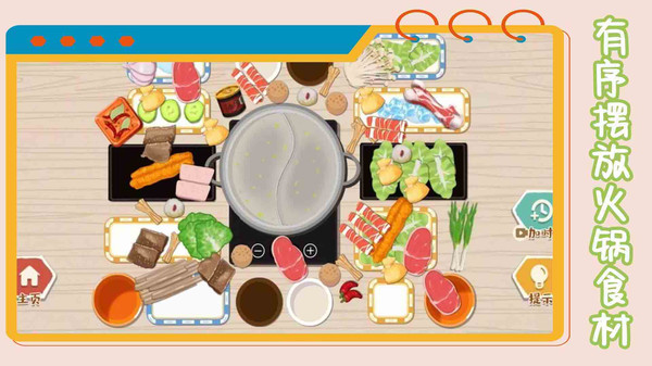 游戏有卡通风格的画面,玩家可以将物品分类放入冰箱。