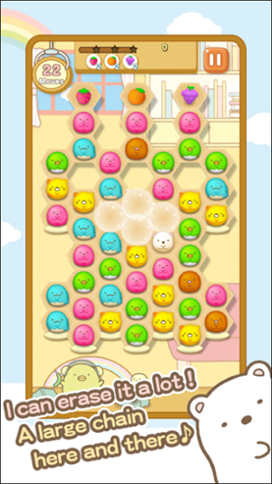 角落萌宠Sumikko gurashi是一款画风温馨治愈的休闲四消游戏,携手可爱萌宠,一同踏入治愈的四消世界。游戏玩法轻松简单,点击、滑动来匹配四个或以上数量的萌宠来完成消除挑战,通关后可以获得丰富的拼图、奖品和礼物。
