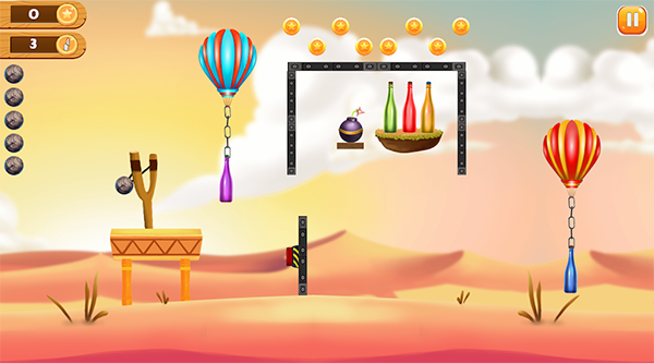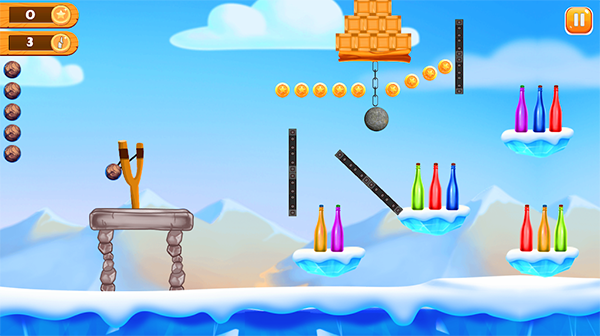 惊人的图形和声音效果、一直瞄准并击倒瓶子以打破它们