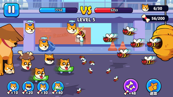 灵活组合不同类型的狗头来对抗和消灭可恶的蜜蜂军团。