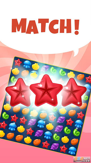 在珊瑚中畅游并探索海洋生物时,遇到并匹配可爱的海洋朋友,如海星,贝壳,水母等