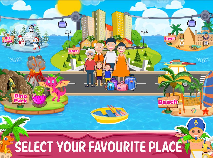 迷你小镇假期是一款快乐的暑假模拟游戏,游戏中包含了各种美丽的场景画面,让他们在这里开心的玩耍,让你度过快乐的时光,和家人在不同的场景中玩耍,去不同的国家,去海边游泳。