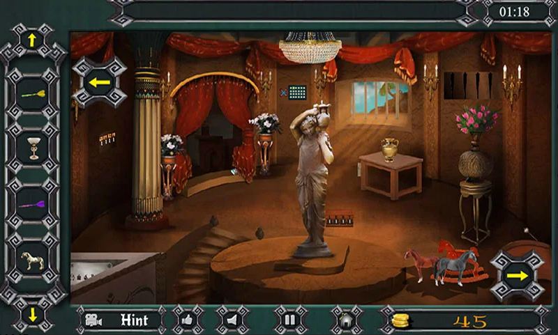 每个场景都会有各种线索,需要仔细搜索,查看房间内的秘密,快速完成逃脱任务。