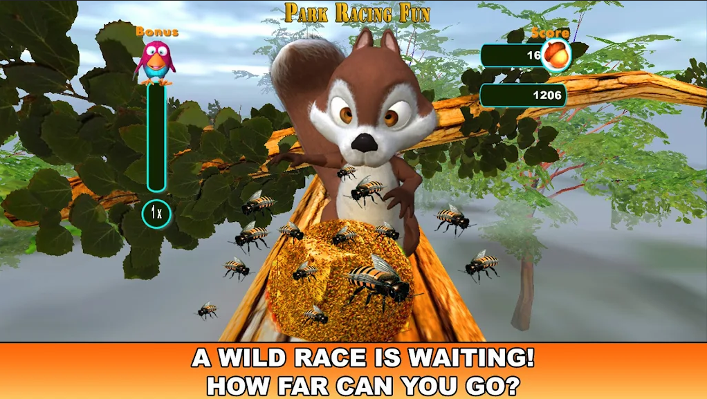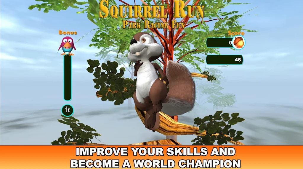 使用你的所有技能,沿着树枝比赛。跳跃和滑动避开障碍物,收集坚果
