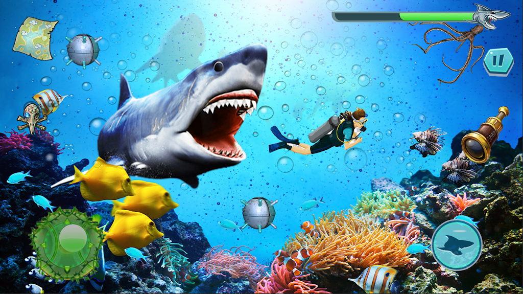 始终控制你的氧气水平,同时在真正饥饿的鲨鱼攻击
