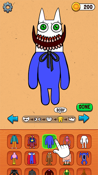 选择头部、眼睛、嘴巴、配饰和体型,让你的怪物与众不同