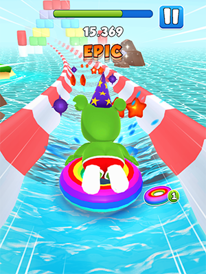在这个为孩子们准备的滑水场免费游戏中,与小熊软糖玩得很开心