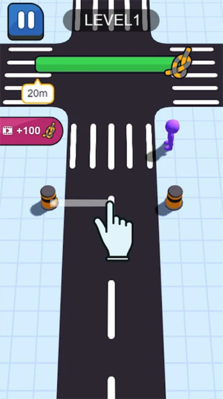 相当考验玩家思维能力的画线救援模拟游戏,绘制绳索来阻挡失控的汽车,救下斑马线上的行人