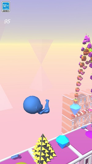 彩色圆形平台的时候触摸屏幕,它会翻转到下一栋楼的顶部。