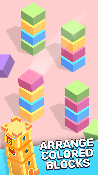 将相同颜色的方块相互堆叠,建造巨大的塔