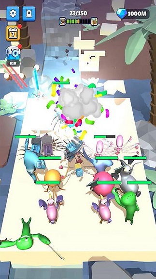 挑战更加困难的关卡,你能够不断提升你的战斗力,合成更加强大的伙伴,一起对付敌人,快来尝试。
