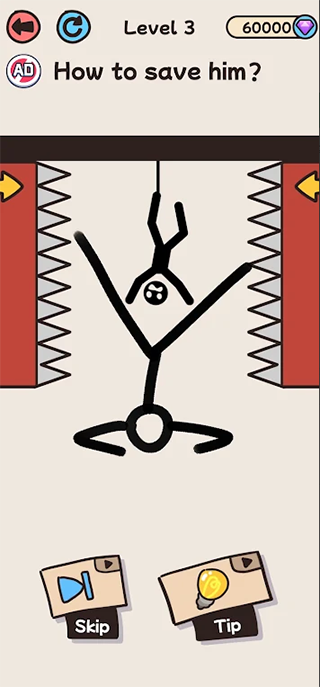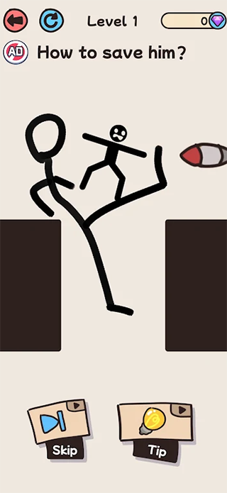 一款轻松有趣的画线解谜闯关游戏,帮助火柴人避免危险,通过画线来保护火柴人