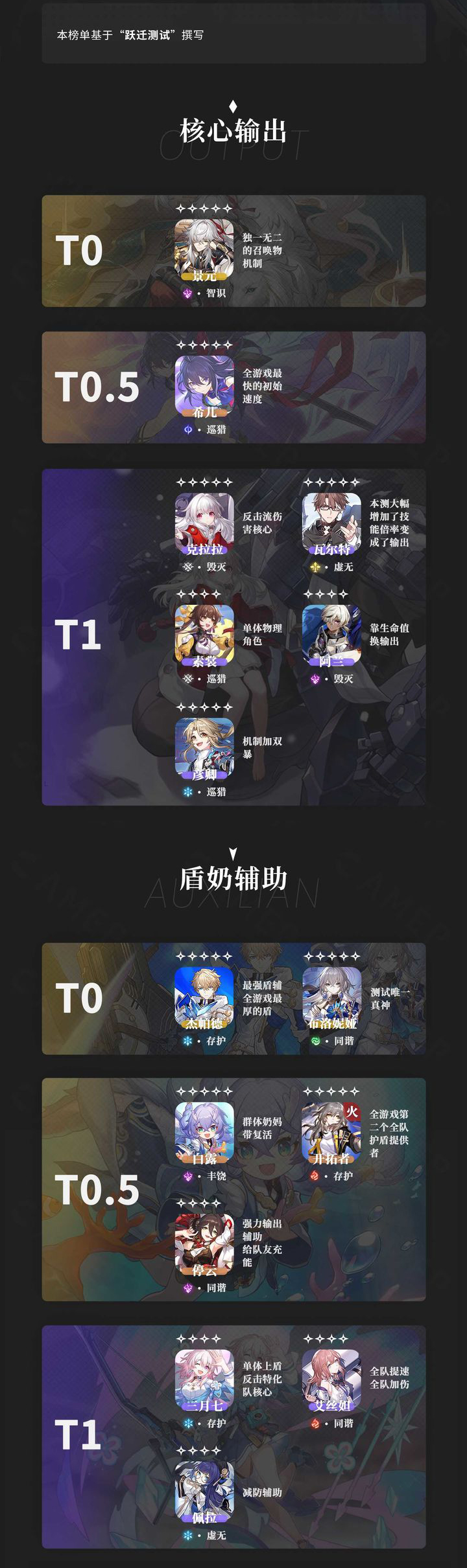 如果开服版本依然是希儿和景元卡池的话,在角色没有强度调整的前提下: