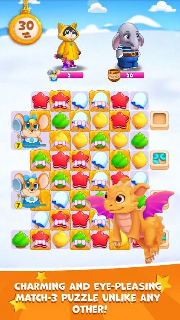 通过交换让糖果相连,并进行消除,每次滑动,即可充满可爱友好的当地人的肚子。