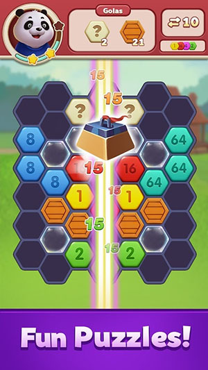 数字坠落Merge Number Puzzle是一款乐趣十足的数字合成游戏,携手可爱的熊猫和棕熊一同在数字世界中冒险,完成各种难题,轻松赢得挑战。玩法很简单,选择移动方块,通过点击来选择到达的位置,合成相同数字方块来获得更大的数字方块。