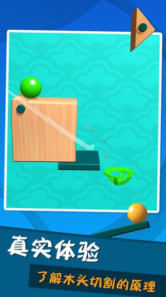 每一关球的位置会放置到不同的位置,利用锯子将木料切开