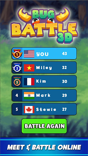 虫子大乱斗Bug Battle是一款有趣的虫虫乱斗游戏,选择并操控你的虫子参与乱斗中,为成为虫王不断努力。游戏玩法很简单,玩家可以通过收集苹果或吃掉对手的头来不断成长为首领。游戏共有3种虫子供玩家选择,快快下载游戏体验吧!