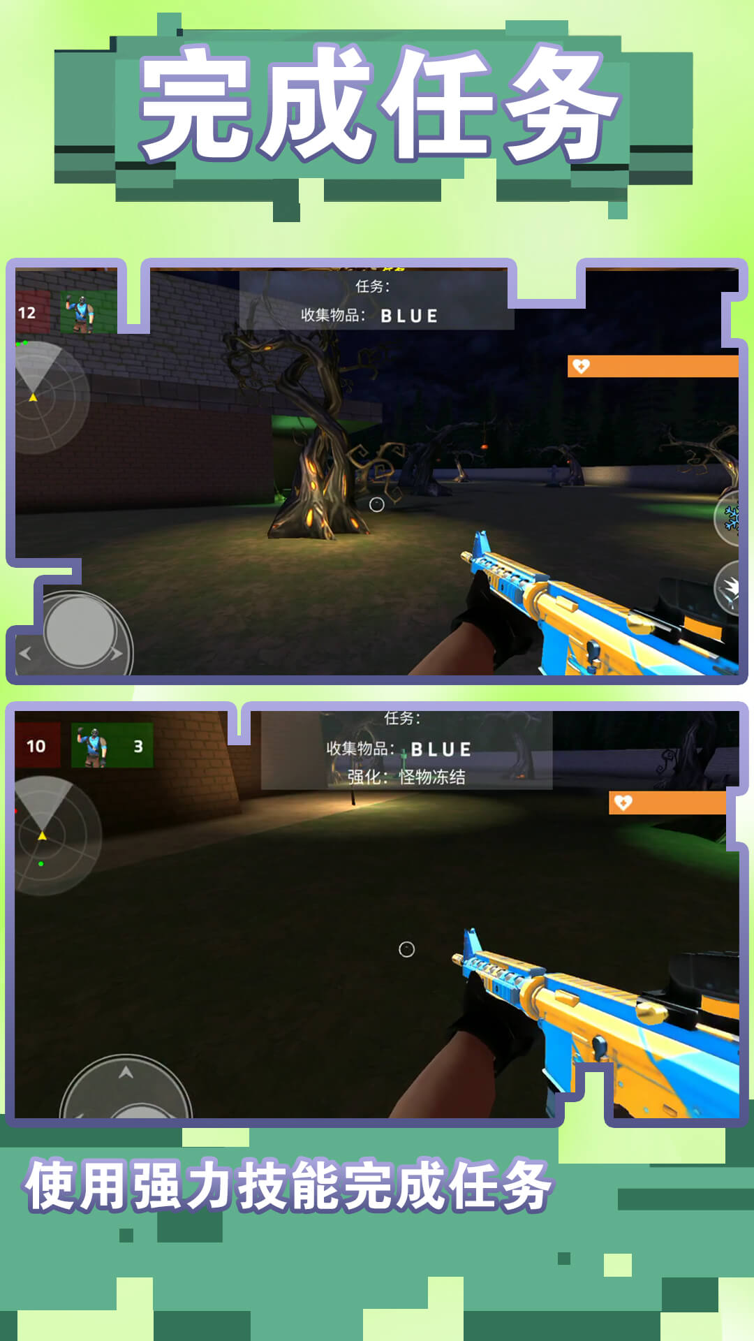 游戏人物和场景采用3D建模,像素风怀旧,经典的第一人称射击视角