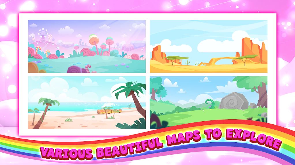 在这个波尼游戏中,探索童话花园、甜美的蛋糕城堡、多彩的糖果之地。